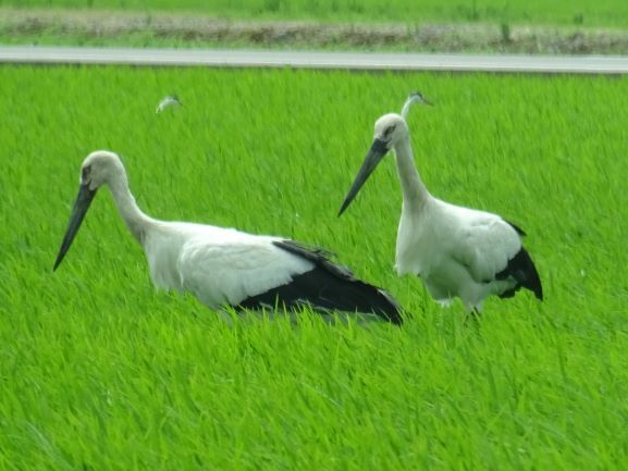 近年は繁殖時に地域内で巣作りをするペアも見られましたが、電柱や鉄塔での営巣のため撤去されたり、うまくペアが成立しなかったりなどで繁殖に至りませんでした。また、古くから自然豊かな農業地域ですが、農作物の栽培農法の変化に伴い、コウノトリのエサとなるカエルやドジョウなどの水生動物が減少傾向にあります。