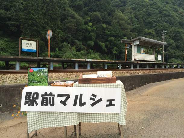 口羽駅前のマルシェでターゲットにしているのは江津発三次行429Dの乗客の方です。江津三次間を日中で長時間停車なく走破できる一方で、沿線の食べ物お土産等に触れることが厳しい列車であります。また両端の江津、三次でもわずかな時間で乗り換えができてしまいます。そんな列車が唯一10分弱止まる停車駅が口羽です。当日も多くのお客様がホームに降りて撮影されてました。撮影をしてもまだ少し時間の余裕がございます。