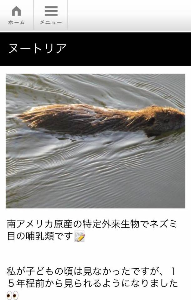たとえば、ヌートリアの紹介記事はこんな感じ。