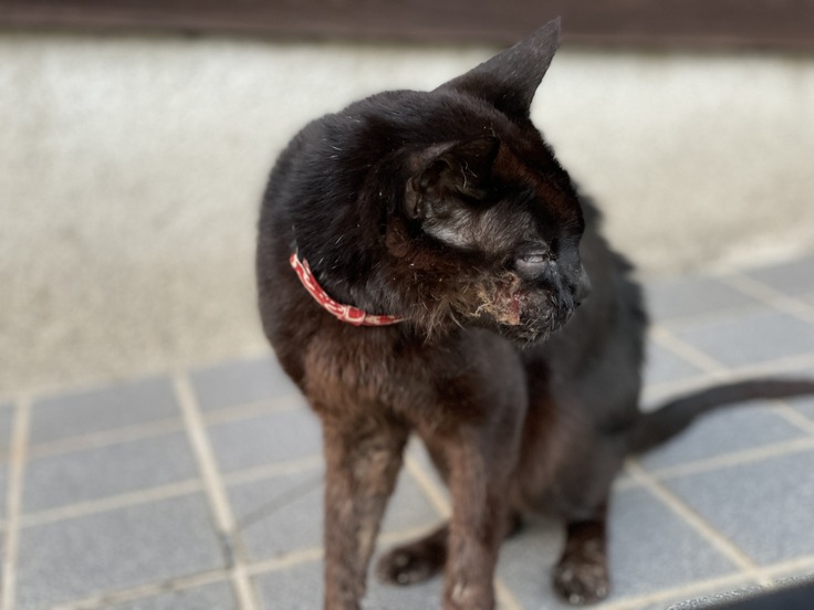 高齢であるため、根本的な治療が難しいですが、定期的な検診や点滴、痛み止めや抗生剤を与える、膿の処理や消毒をするなど、週に3回以上病院に連れて行っています。