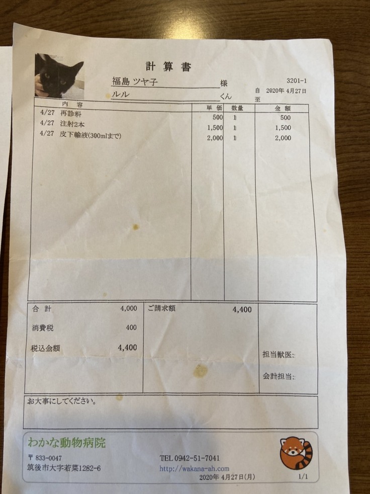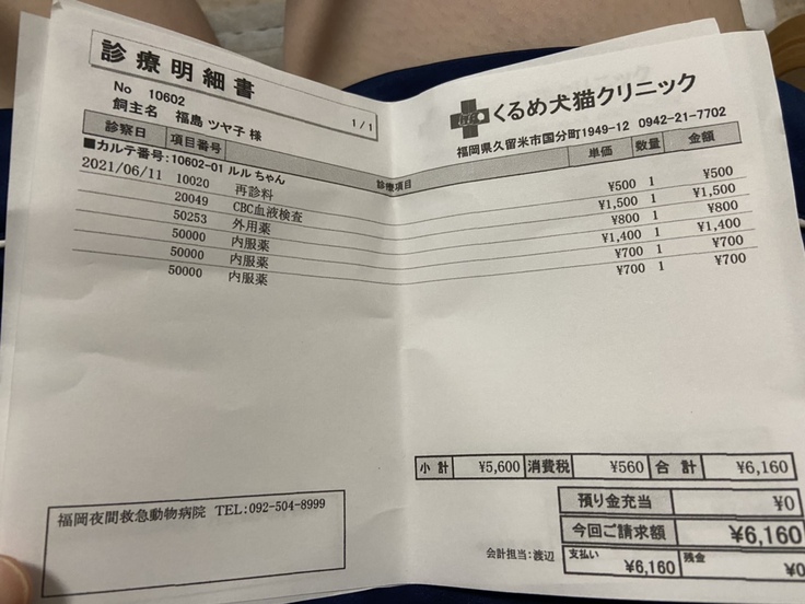 予想外の通院があったことや、ルルの治療がまだ長引くことや投薬の追加も予想されるため、