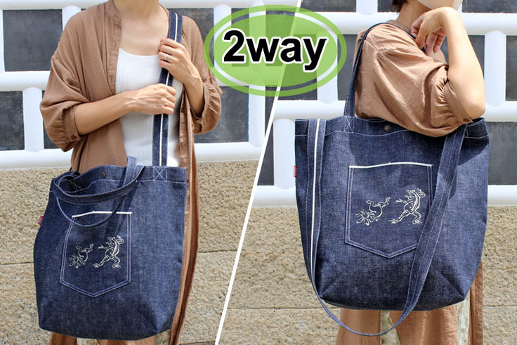 岡山県産のセルビッチデニムを使用した大型2WAYバッグです。