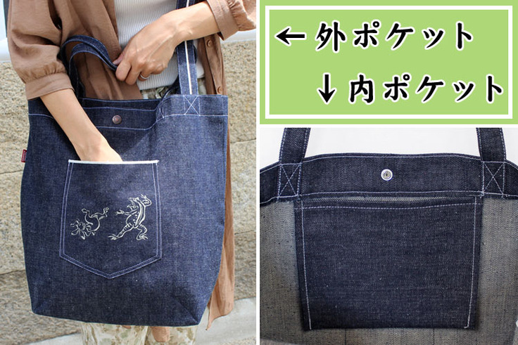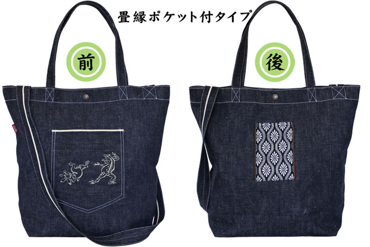 素材:セルビッチデニム(綿100%) 畳縁(ポリエチレン・ポリエステル)