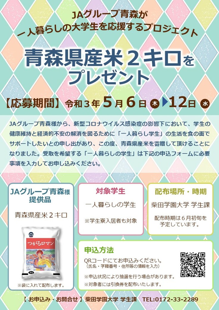●弘前市による「市食で応援!学生支援事業」(弘前学院大学、柴田学園大学、弘前医療福祉大学)
