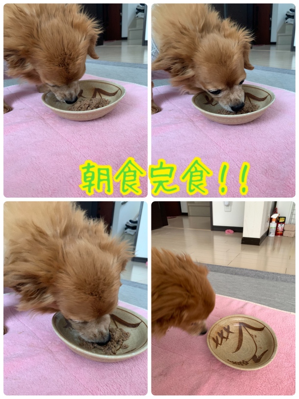いつものドックフード用のお皿ではなく、私達と同じお皿に変えたら食べるようになりました😅