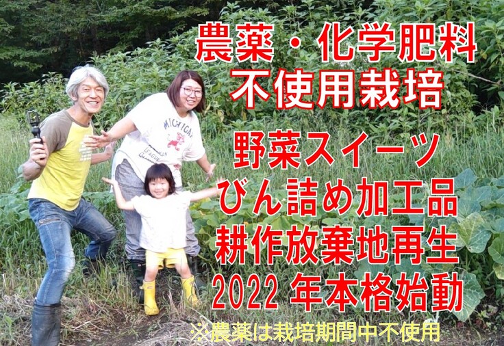 栽培期間中、農薬/化学肥料を使わずに野菜づくりをし、その野菜を使ったスイーツ・びん詰め商品を全国に届けたいという想いを胸に、今年2021年2月に家族3人で岩手県へ移住をいたしました。