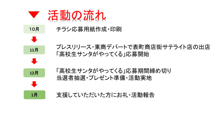 これらの課題を解決し、この「高校生サンタがやってくる」企画をより良いものにするために、皆さんの力を貸してください。