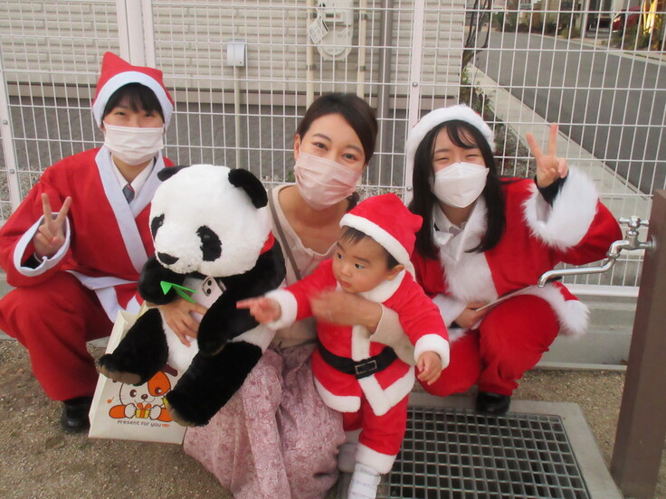 感想:サンタの服装に少し驚いていたけどパンダのぬいぐるみを見て喜んでくれていた。子どももサンタの服装をしてくれていてすごく可愛かった。