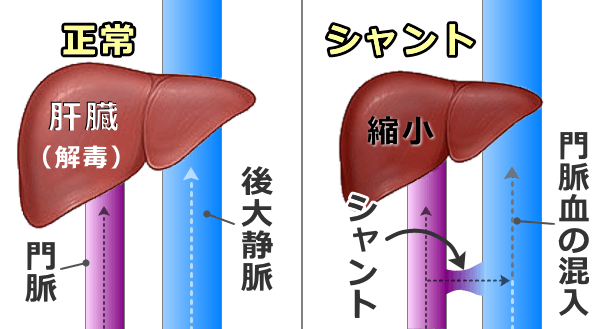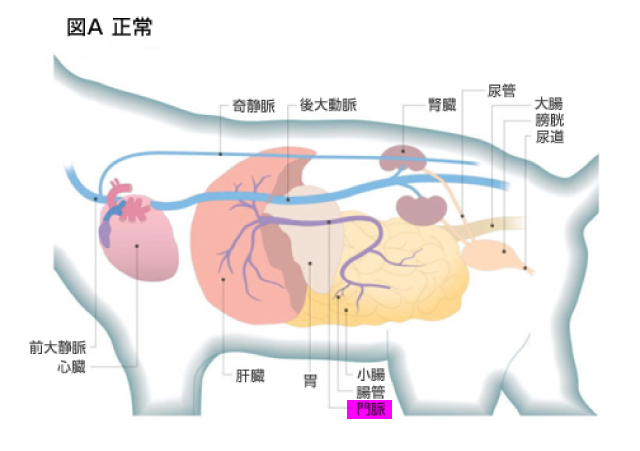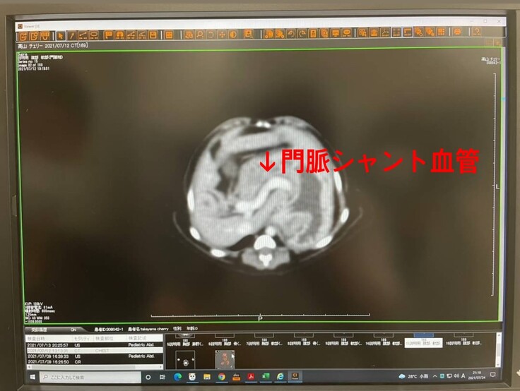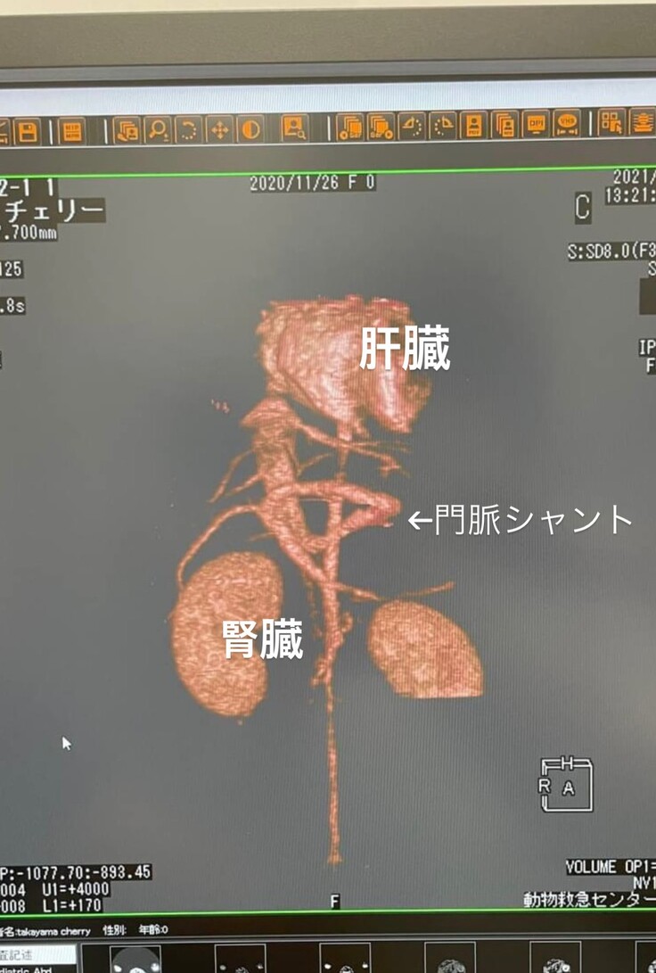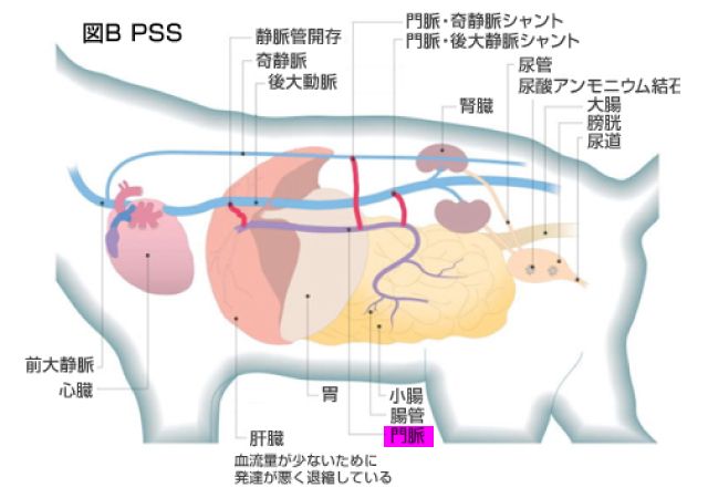 検査の結果、先天性による【門脈体循環シャント】と診断されました。