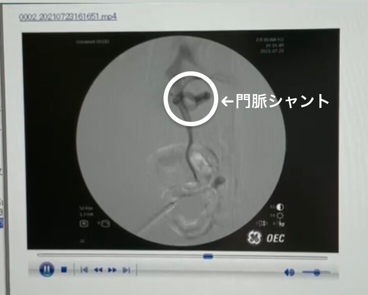 ↓手術前(肝臓に循環するはずの血液が門脈シャント血管に流れているのが分かります)