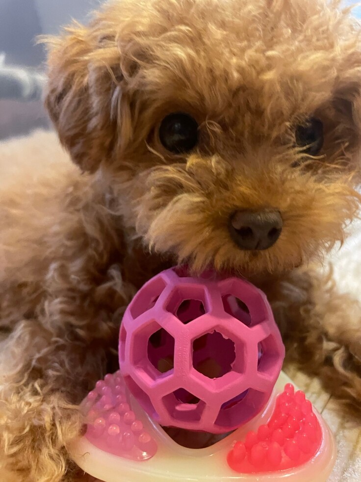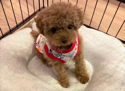 トイプードル、女の子、生後8か月(2020年11月26日生まれ)、チェリーの飼い主でございます。