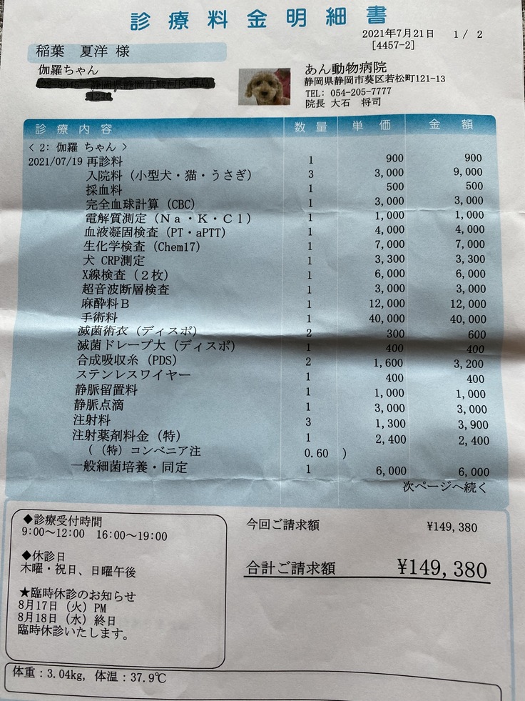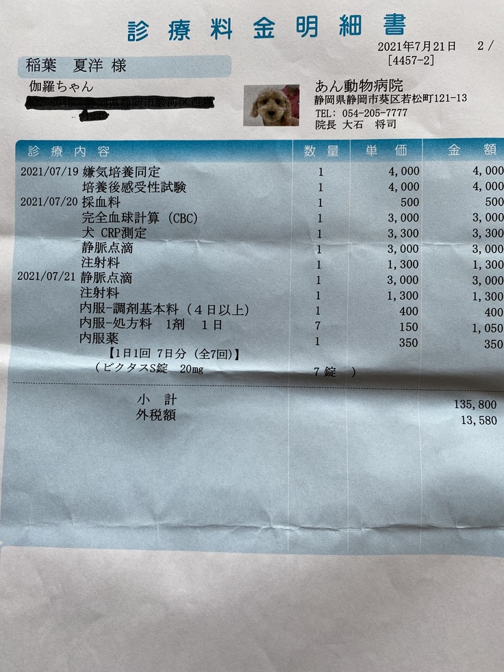 通院費・追加の薬・抜糸の費用は飼い主として最低限の義務をはたしたいとおもいます