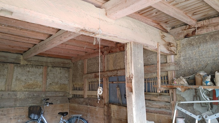 (「牛小屋」の中の様子。かなり年季が入っていますが、