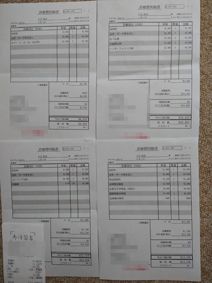 上記写真にも術前の治療費を掲載していますが、現時点の総費用が40万円超ほどの金額になっています。
