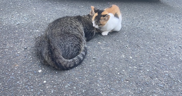 本日の写真は三毛猫子猫がシマシマちゃんに寄り添っているのが可愛くて写真を撮りました😻