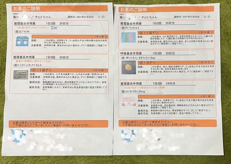 レントゲン、心エコー、血液検査をし2種類の投薬開始。