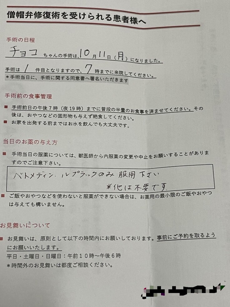 手術をおこなう病院は県外にあり、チョコには遠距離すぎるため