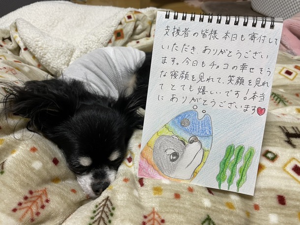 ・感謝のメッセージと元気になったチョコの写真をメールで送らさせていただきます。