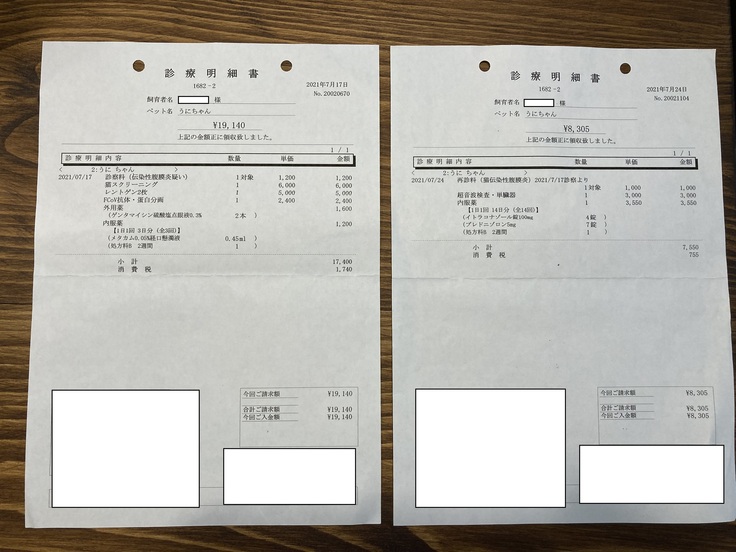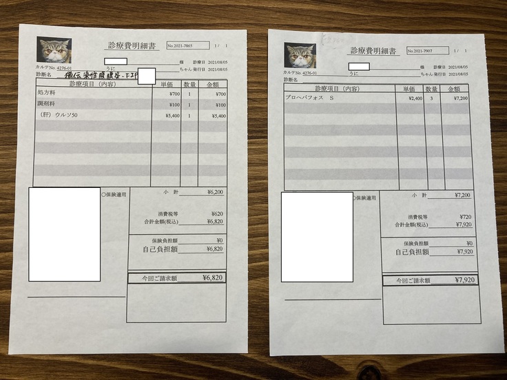8月5日 6,820円+7,920円(診察なしで肝臓の薬のみ処方)
