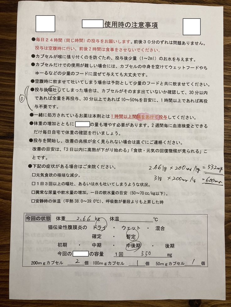PCR検査も陽性となり、今日から未承認薬を投薬していくこととなりました。