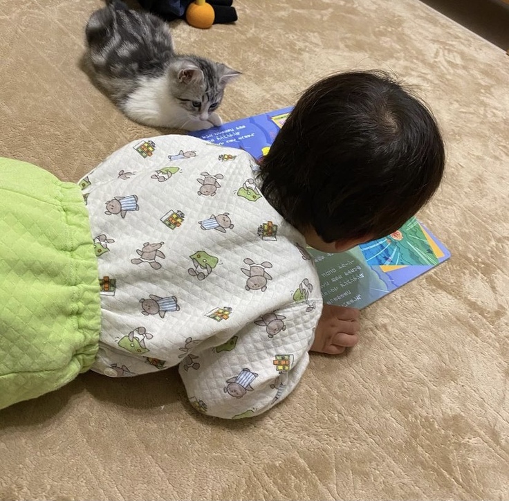息子が寝る時はいつも寄り添い本当の兄弟のようで、見ているだけで幸せを感じています。