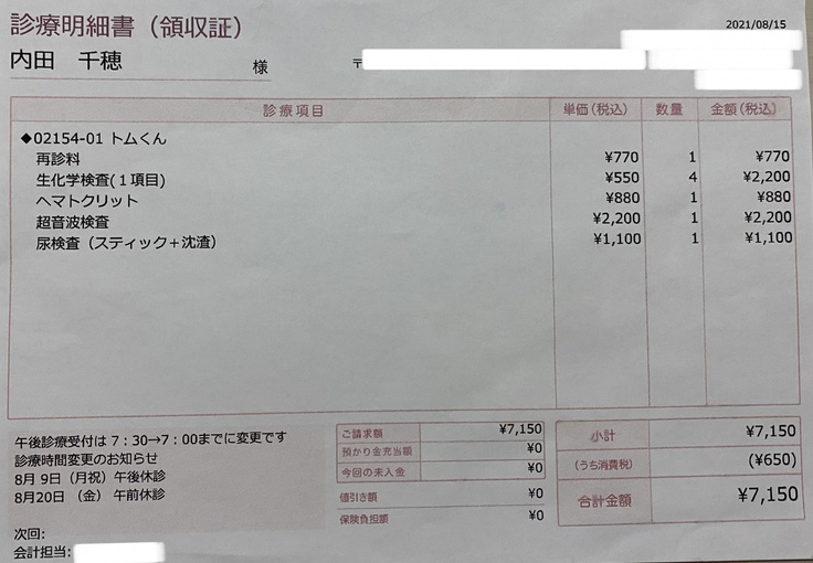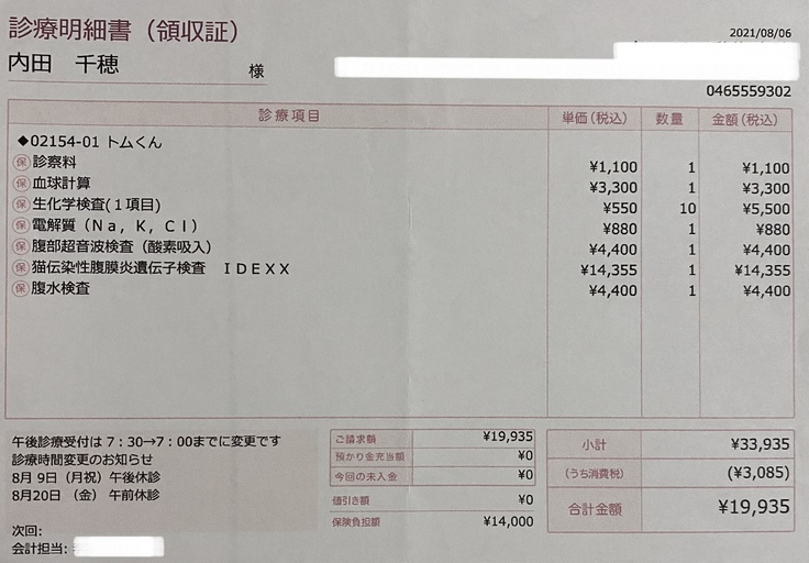 初めての猫ちゃんだったので納得しようと思ったのですが、どうしても気になってしまい、8月6日に他の病院に連れていきました。