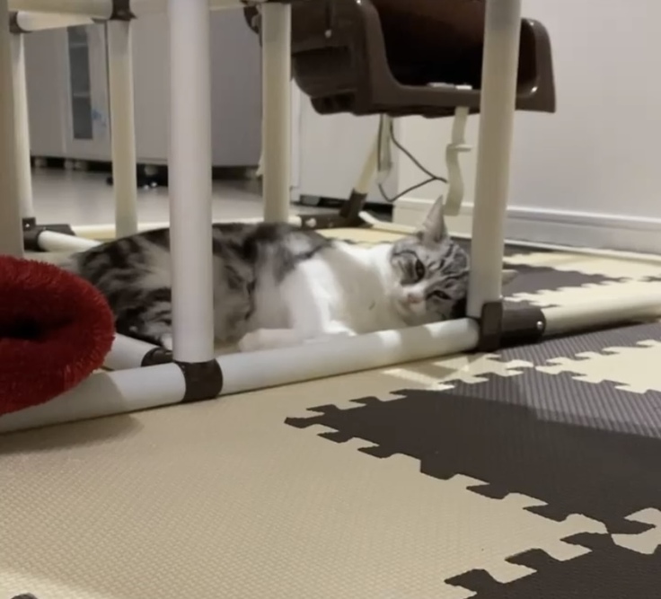 高いところにも行かなくなり、ご飯の時間以外は動かなくなりました。