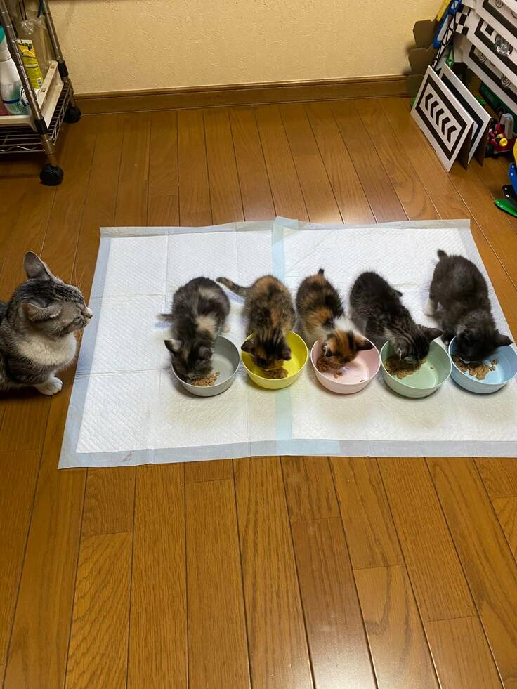 ママのお腹が大きくなるところから携わらせて頂き、無事に5匹の子ねこが生まれ、