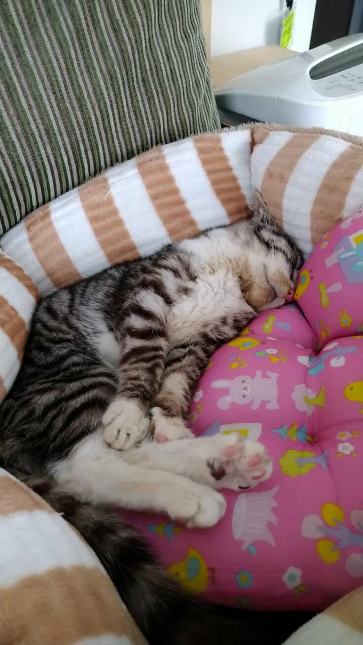 なつなも相変わらず毛繕いをしてくれたり、枕替わりになってくれたりしていますよ。