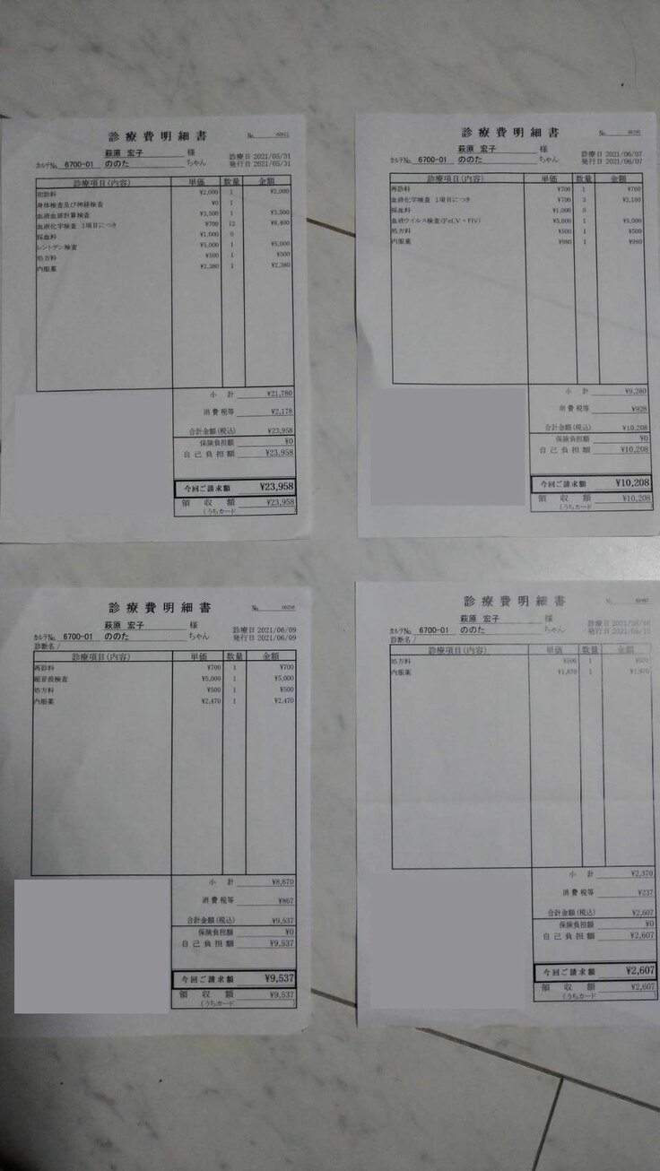 エイズ、白血病、ネココロナウィルス、門脈シャント等の疑われる病気を説明されました。