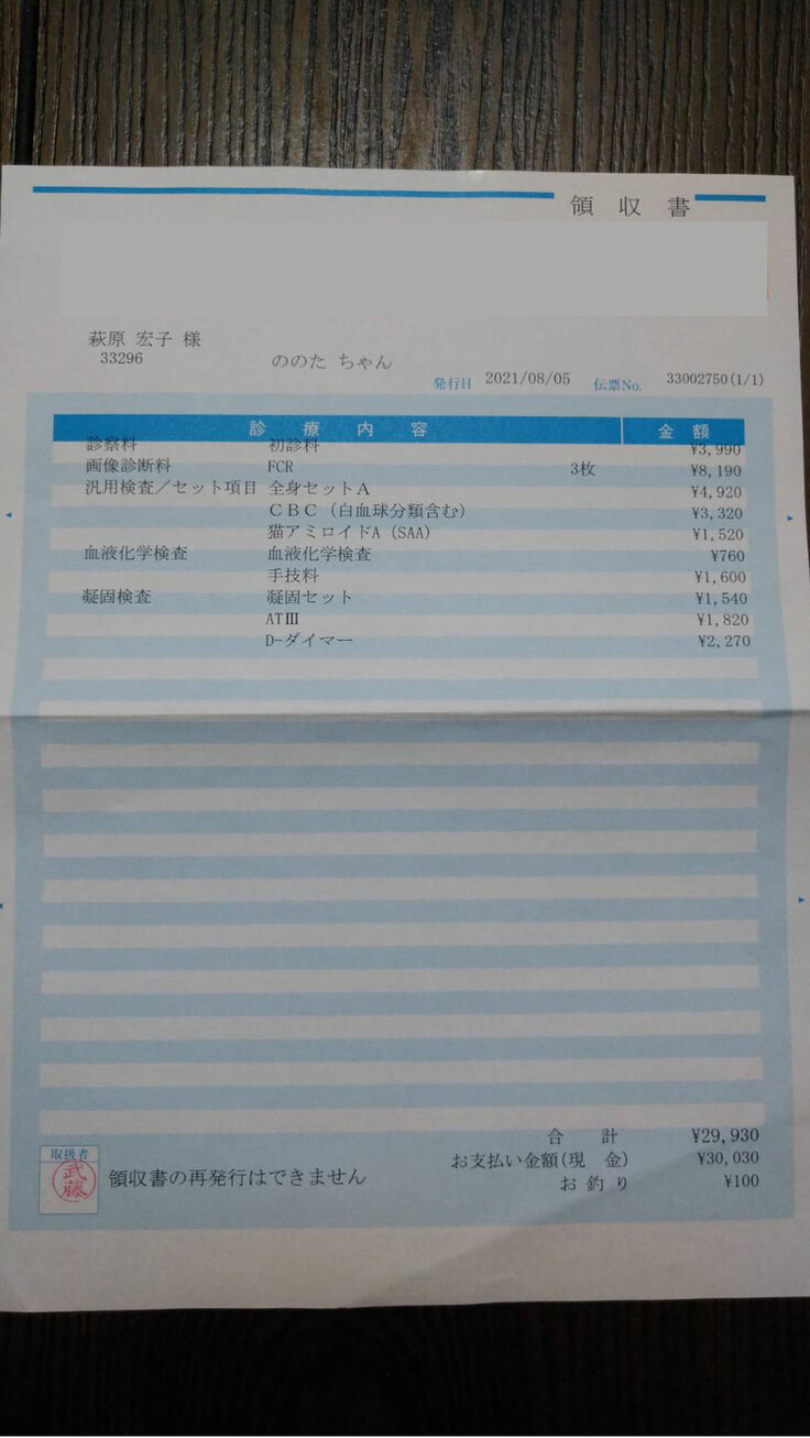 変えた先の動物病院の先生は、抱っこしてすぐに異変を感じ、即検査をして下さいました。