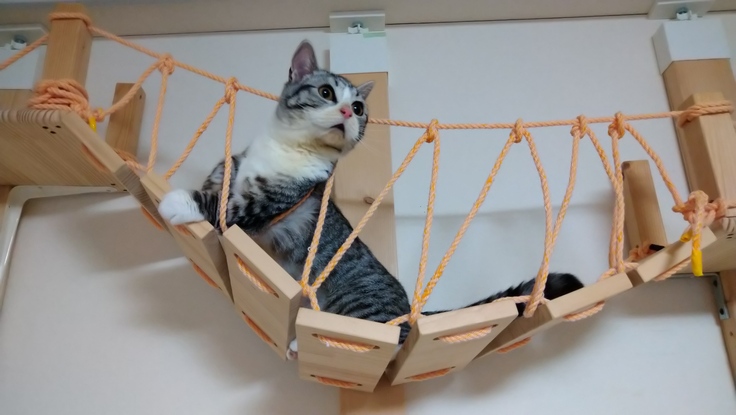 ますます軽快!キャットウォークのてっぺんまで、ゆっくりと慎重にですが頻繁に登るようになり、いつもドヤ顔を高い所からビシッとキメてきます(笑)