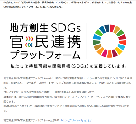 EVモビリティメーカー(株)ブレイズが、「地方創生SDGs官民連携プラットフォーム」に加入しました。|株式会社ブレイズのプレスリリース (prtimes.jp)