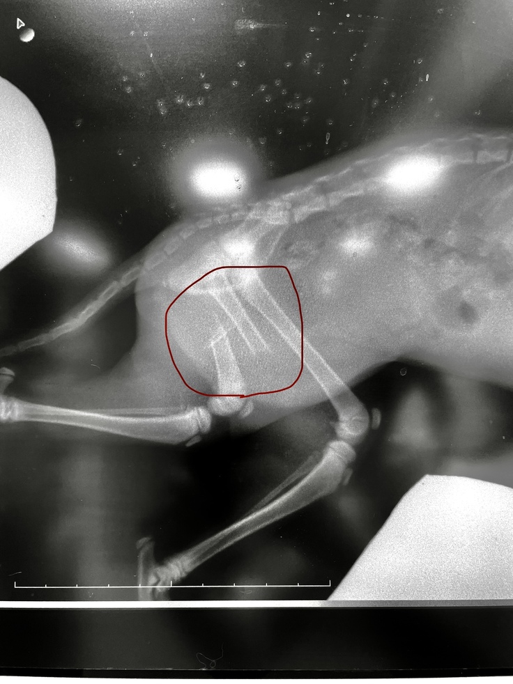 生後2〜3ヶ月の女の子で、恐らくここ1週間以内で交通事故に遭い、骨折したのだろうとのこと。