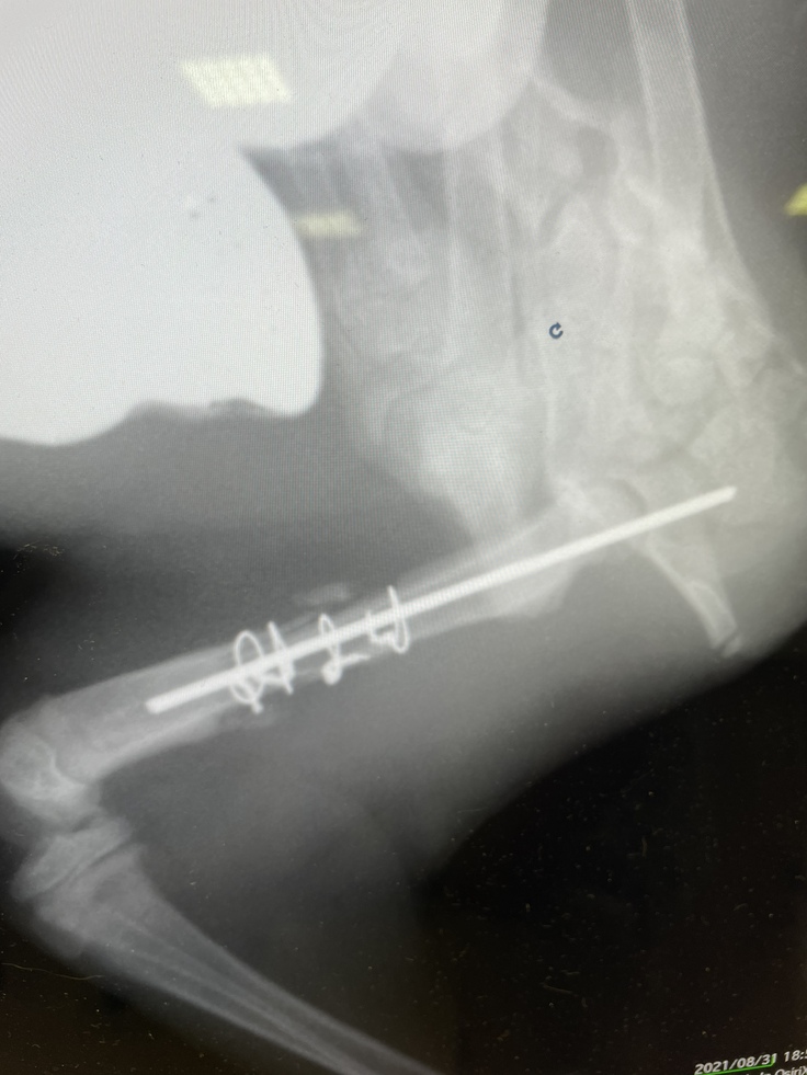 左後脚大腿骨粉砕骨折手術:2021/8/20 完了