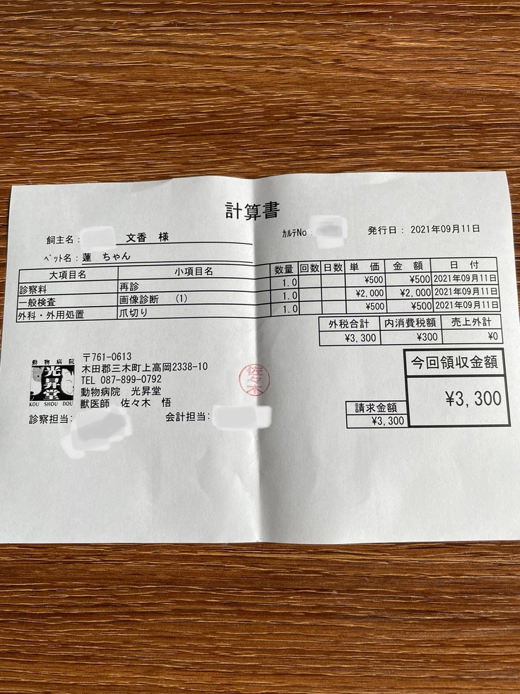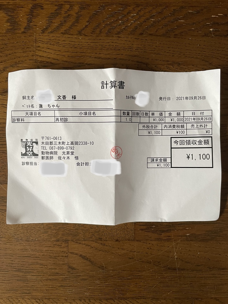 保護して数時間後に動物病院へ行きました。