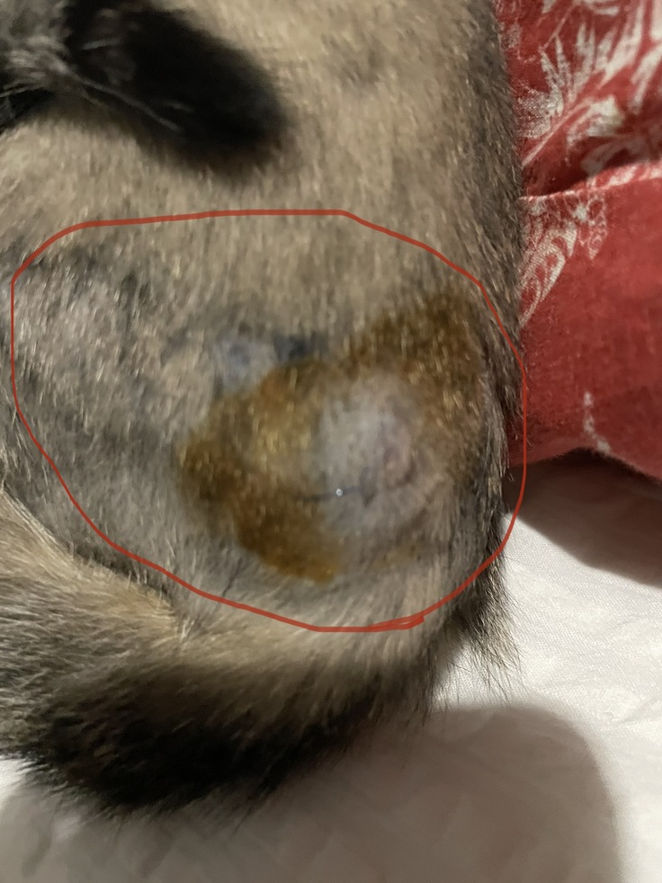 受診日当日の朝、キャリーケースの中に血の痕を発見して縫合箇所を確認したところ、蓮が自分で糸を引きちぎっていました。(幸い傷口はほとんど塞がっていました。)