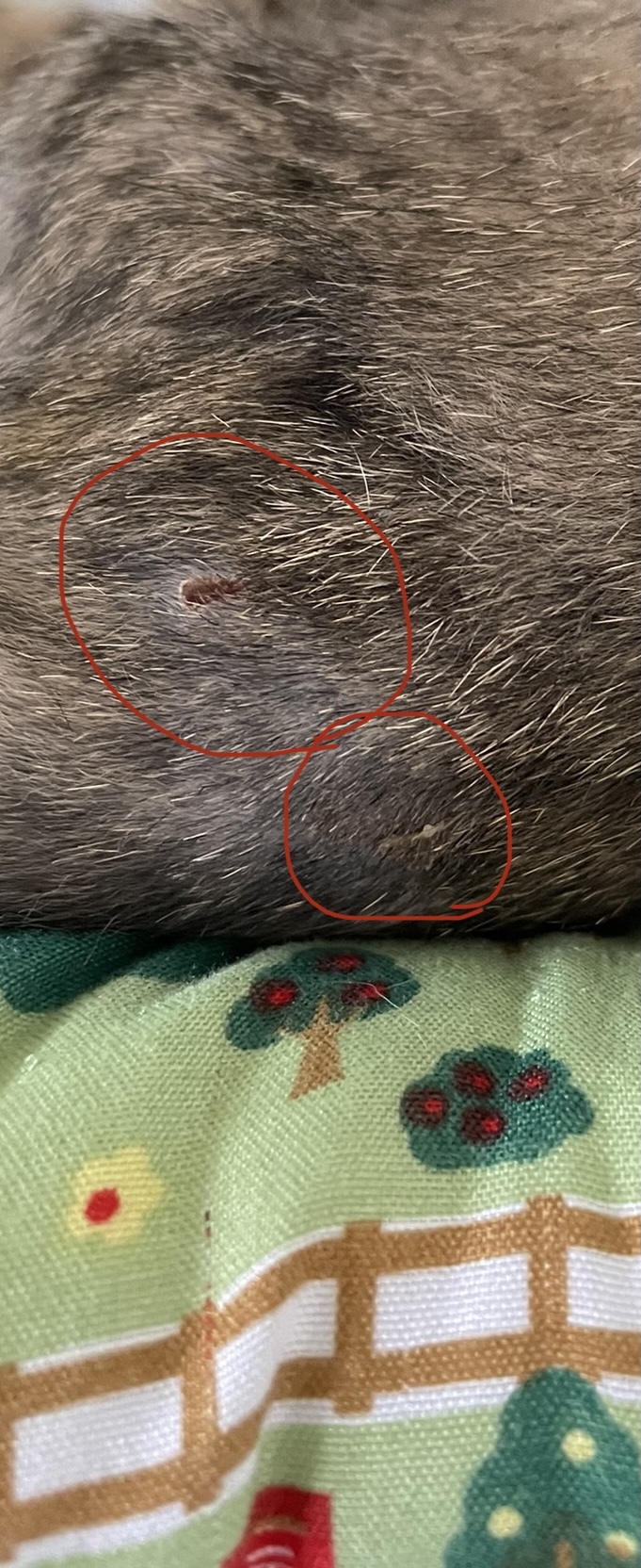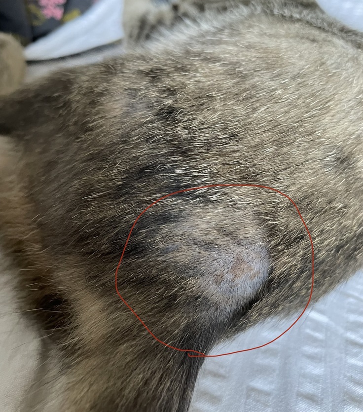 ピンを抜いたところは未だに噛んだり舐めたりしていて毛が薄いままです。皮膚の盛り上がりはかなり目立たなくなりました。