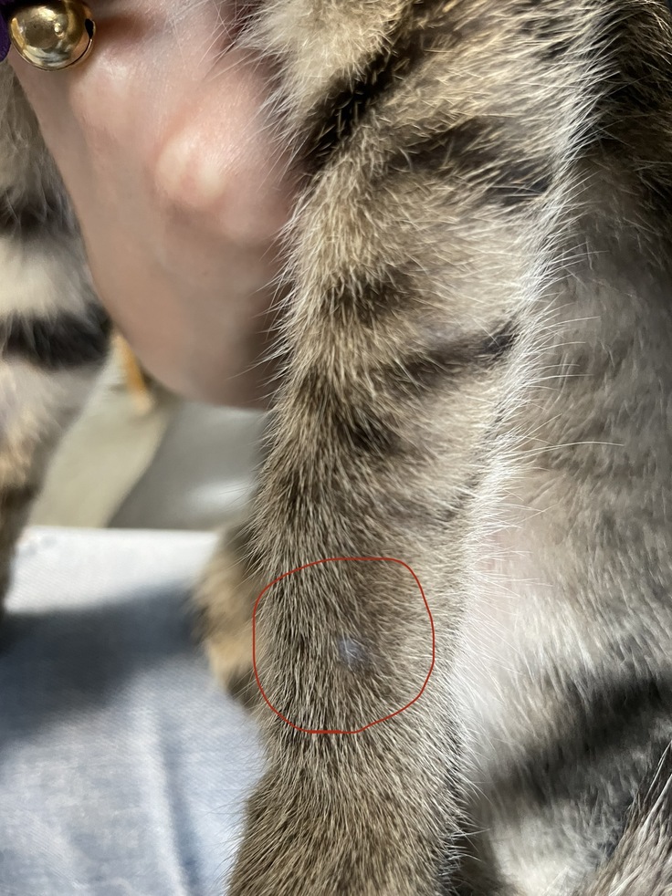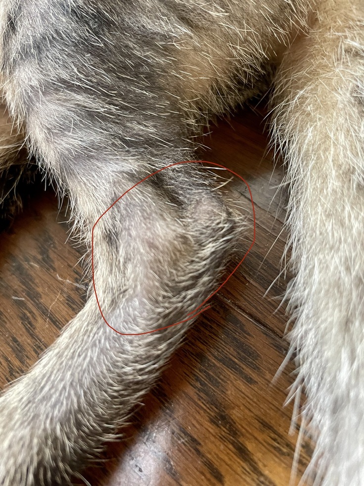 今朝いつものようにブラッシングしていると毛が抜けている箇所を発見し、動物病院へ連れて行きました。手と足に小さくですが毛が抜けていたり、薄くなったところがあったので念の為に診察をお願いしました。