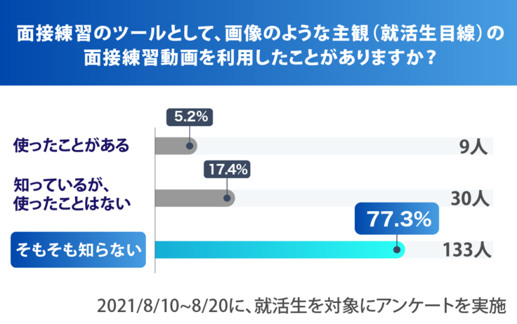 こうした経緯から、今回は就活生が「一人で・どこでも・いつでも・簡単に」面接練習を行い、場馴れするための動画を作りたいと考えました。