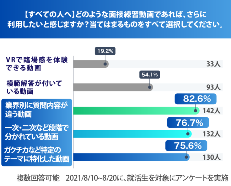 - 面接練習動画の制作本数を、14本から25本に増やします。