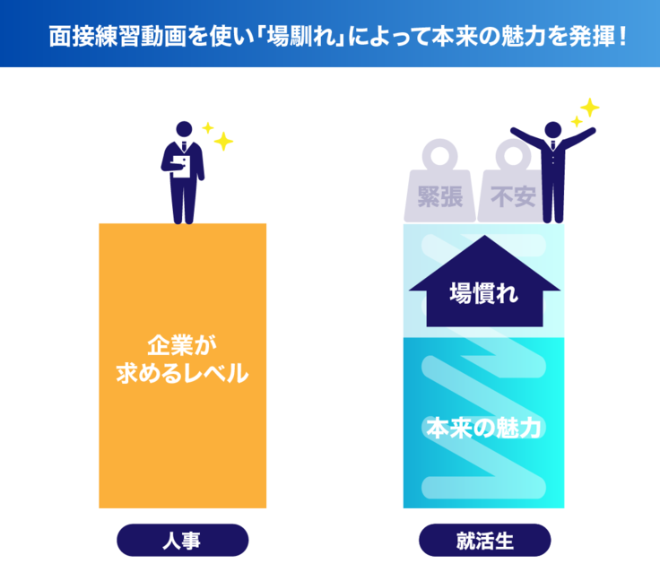 そのため、就活生は「場馴れ」していないだけで面接で力を発揮できずにいるのです。