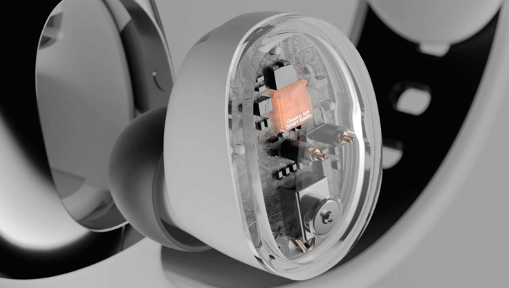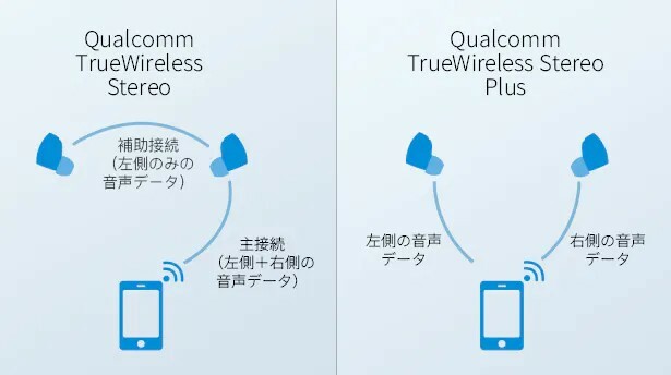 新しい技術Quaicommチップセットで左右のイヤホンに同時に情報が伝わります。