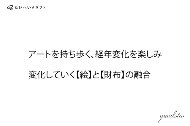毎日りんごの木のお世話をしながら、創作活動も続けております。この度はクワッドスターとのコラボ企画「The one wallet」をご覧いただきありがとうございます。 私はアートが持つ力を信じています。アートを持つこと、買うこと、楽しむこと、そして感動すること。アートはいつも人々の胸に、特別な思いを育んできました。一言で言わせていただくと、アートは「希望」と感じています。そんな思いでいろんな方にアートを体感していただきたく、革財布に絵を焼きつけることを考案いたしました。 楽しんで頂けたら幸いに思います。