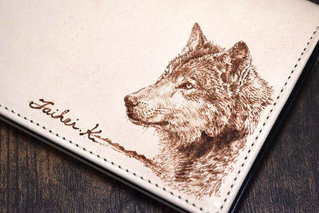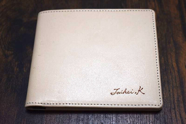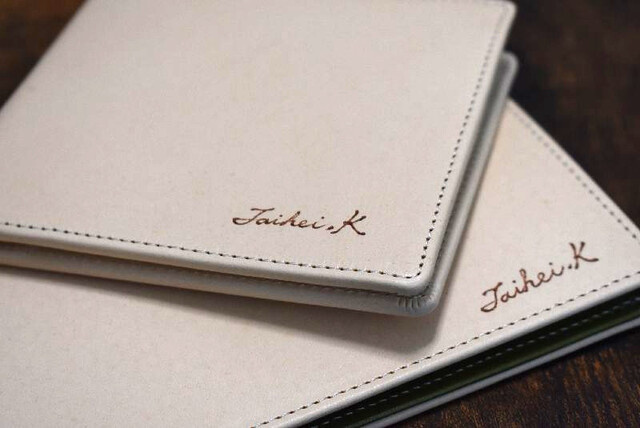 The one wallet を製作するにあたり【高品質な革製品をオーダーで製作するブランド クワッドスター】に製作協力を頂きました。コテで直接革に焼きつけ描いていく【レザーバーニング】を一番活かせる上質なヌメ革をチョイス致しました。