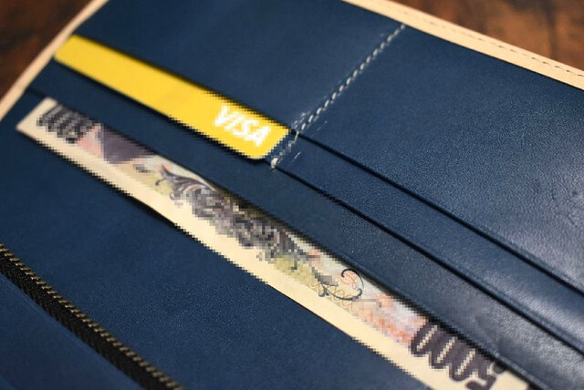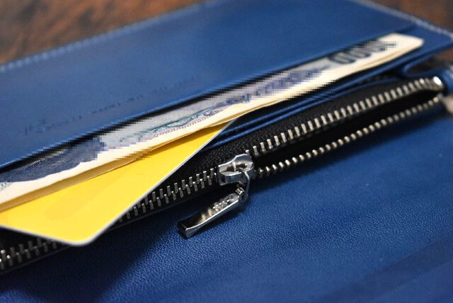 カード段下にはお札や領収証が収納できるラージポケットを配置。