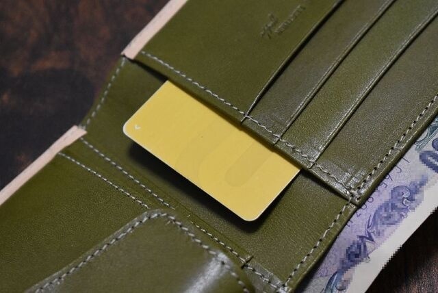 ゆったり寸法の札入れ、20枚程度は余裕の収納です。