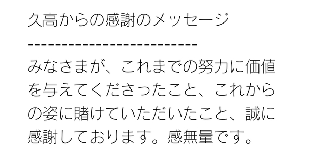 ●久高から支援者さまの名前付きで感謝メールを送ります。