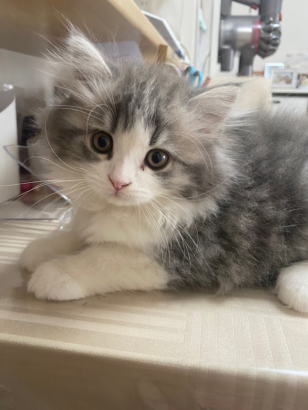 発熱が続き、元気や食欲もなく、1日中ほとんど横になって寝てばかりで心配になり獣医にて診察を受けたところ、FIP(猫伝染性腹膜炎)という難病にかかっていることが判明しました。日に日に弱っていくテスを見て、悲しくて現実を見ることができませんでした。生後6か月の子猫なのになぜ?