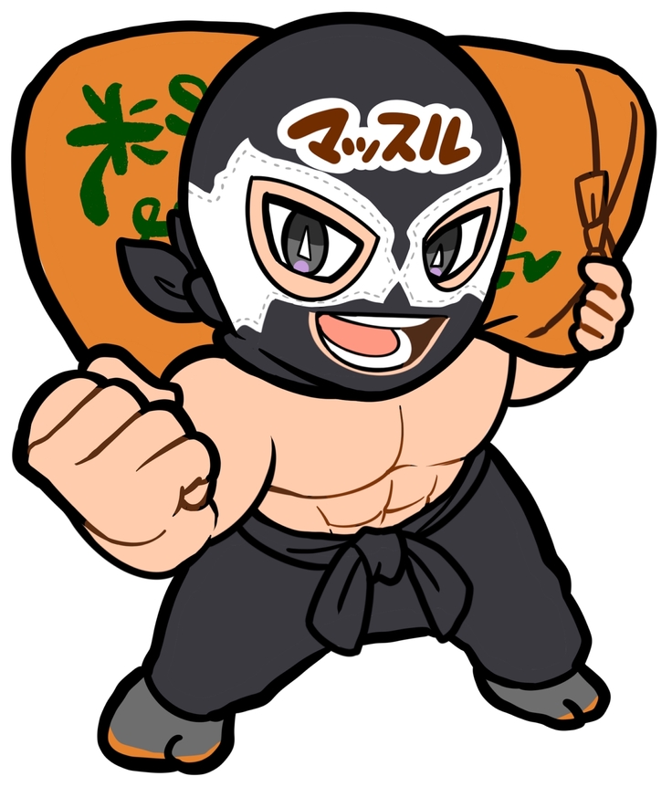 自慢の筋肉で浪江町の人々が健康と活力に満ちていることを体現するマッスルマン